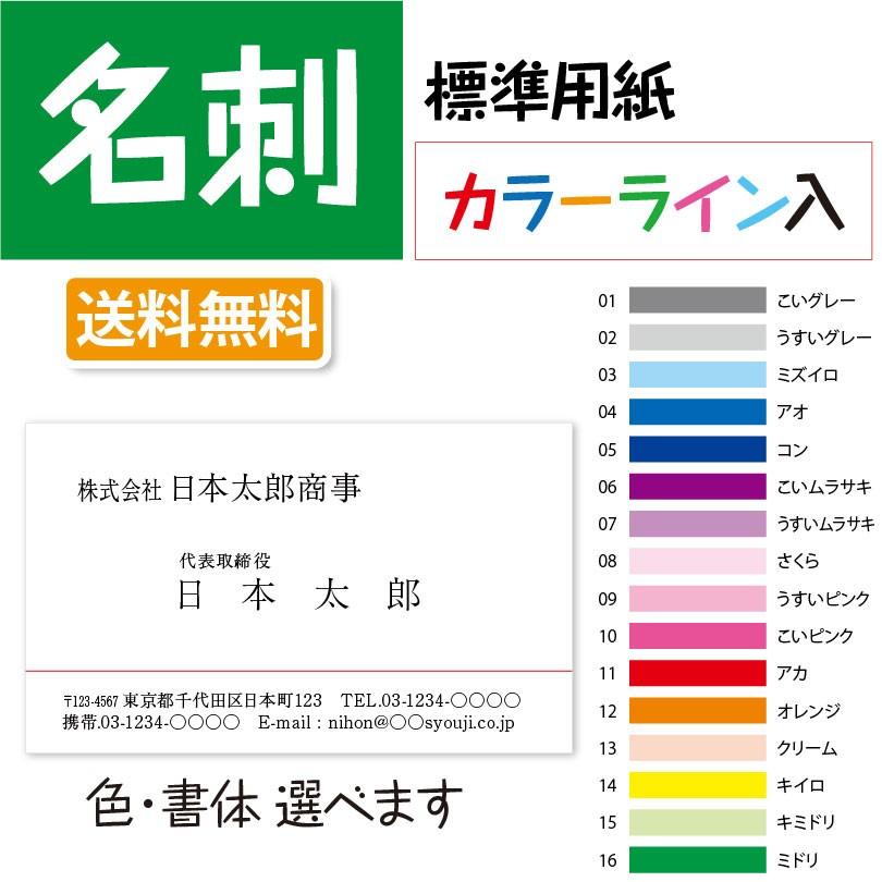 名刺作成 カラーライン入りデザイン 印刷 100枚 送料無料 版下無料 Dl 001 Kazuno Online 通販 Yahoo ショッピング