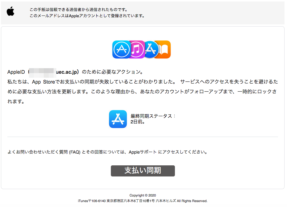 2020 2 20 22 30 Appleを騙る詐欺メールに関する注意喚起 情報基盤センターからのお知らせ