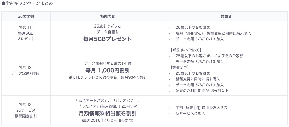 Auの学割 2016年 キャンペーン Au