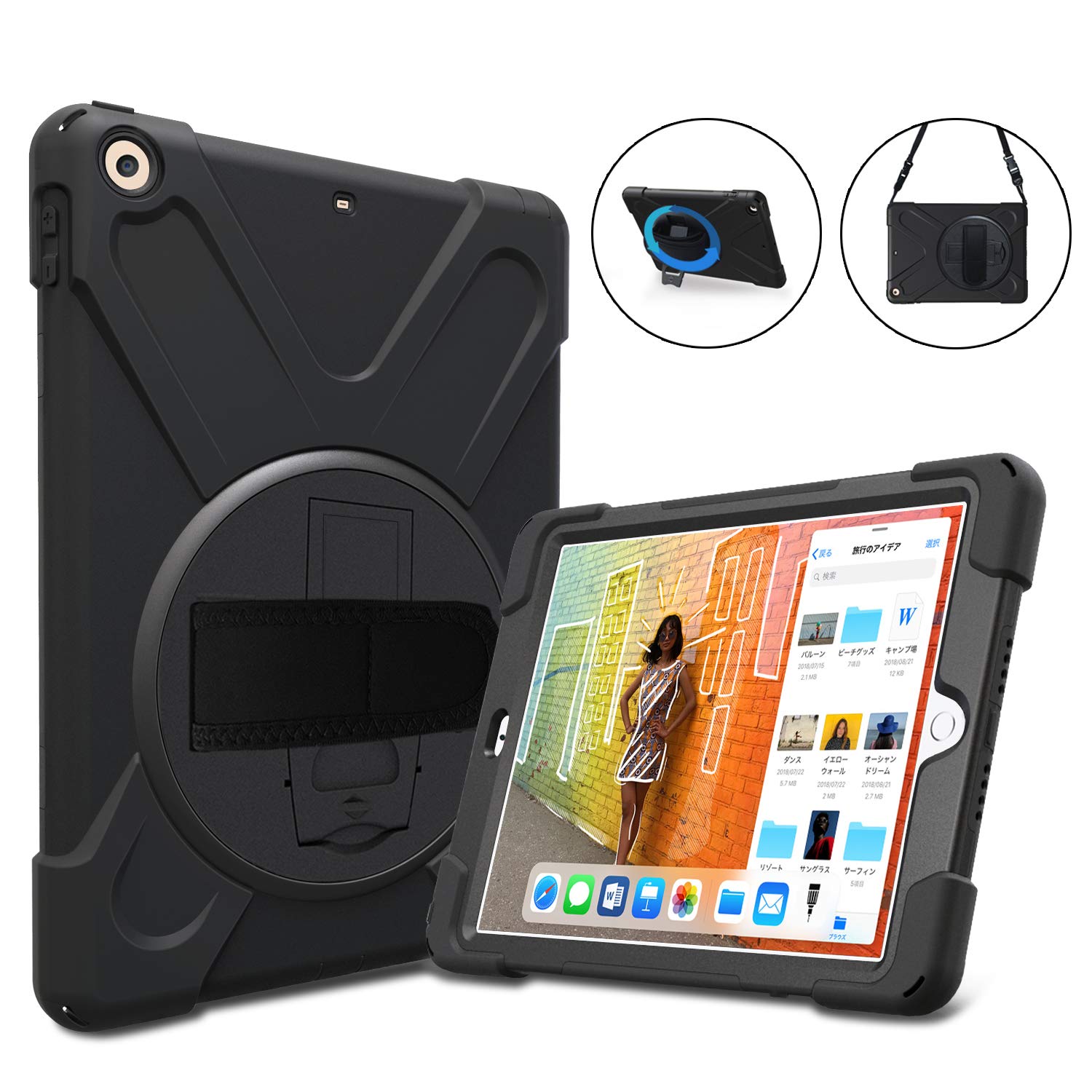 Amazon Herize Ipad 第5世代 第6世代ケース スクリーンプロテクター付き Ipad 9 7ケース ハンドストラップ ショルダーストラップ 回転スタンド付き フルボディ 頑丈な耐衝撃ケースカバー 子供用 A1893 A1954 A1822 A1823ブラック Herize タブレットケース 通販